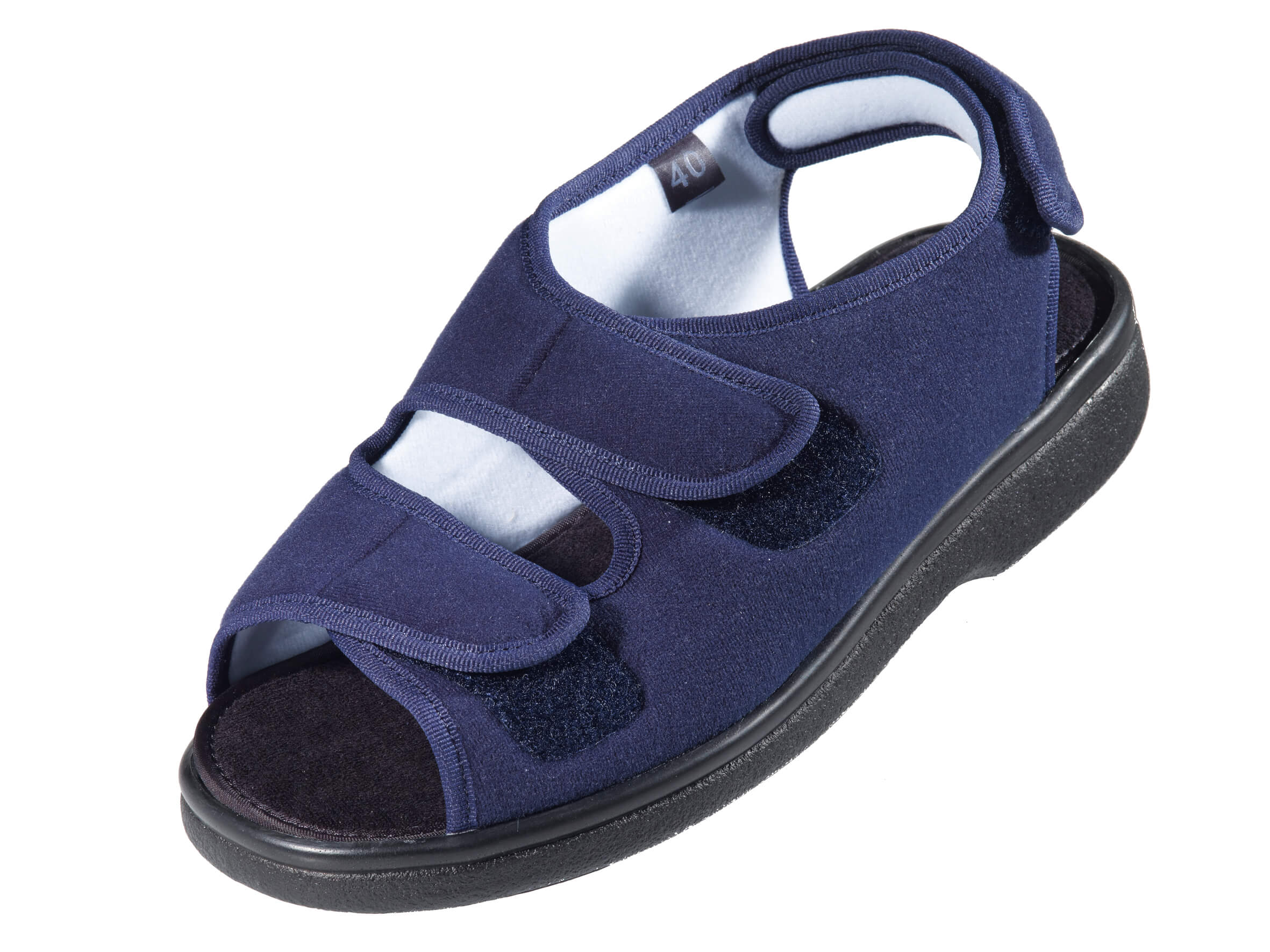 - Con tre chiusure in velcro per un adattamento individuale nella zona anteriore, del collo del piede e del tallone. Finestra aperta sul tallone